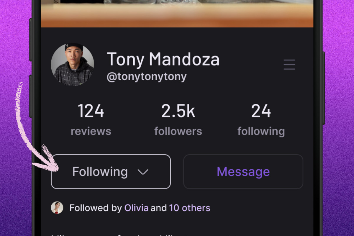 Follow friends, chefs, and insiders you trust. Your feed starts to reflect the opinions that matter to you.